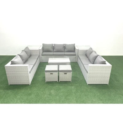 Rattan Garden Outdoor Furniture Set 11 Seater Sofa Coffee Table with 2 Small Footstool Side Tables Light Grey Mixed Fimous