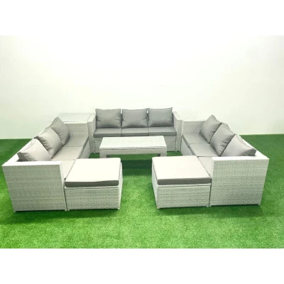 Rattan Garden Outdoor Furniture Set 11 Seater Sofa Oblong Coffee Table with 2 Big Footstools Side Light Grey Mixed Fimous