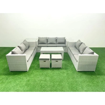 Rattan Garden Outdoor Furniture Set 11 Seater Sofa Oblong Coffee Table with 2 Small Footstool Side Light Grey Mixed Fimous