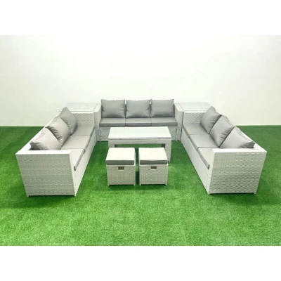 Rattan Garden Outdoor Furniture Set 11 Seater Sofa Oblong Coffee Table with 2 Small Footstool Side Tables Light Grey Mixed Fimous