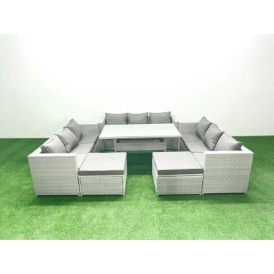 Rattan Garden Outdoor Furniture Set 11 Seater Sofa Rectangulr Dining Table with 2 Big Footstools Light Grey Mixed Fimous