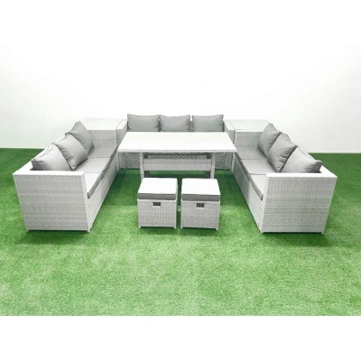 Rattan Garden Outdoor Furniture Set 11 Seater Sofa Rectangulr Dining Table with 2 Small Footstool Side Tables Light Grey Mixed Fimous