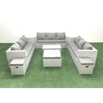 Rattan Garden Outdoor Furniture Set 12 Seater Sofa Coffee Table with 3 Footstools Light Grey Mixed Fimous