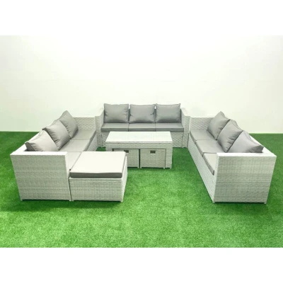 Rattan Garden Outdoor Furniture Set 12 Seater Sofa Oblong Coffee Table with 3 Footstools Light Grey Mixed Fimous