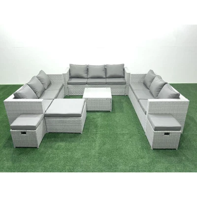 Rattan Garden Outdoor Furniture Set 12 Seater Sofa with 3 Footstools Light Grey Mixed Fimous