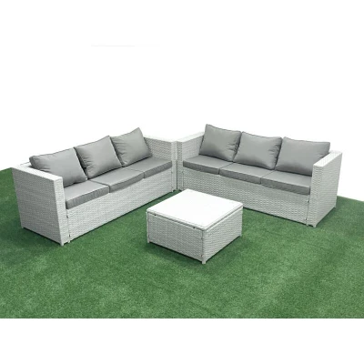 Rattan Garden Outdoor Furniture Set 6 Seater Sofa Light Grey Mixed Fimous