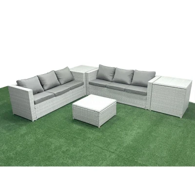 Rattan Garden Outdoor Furniture Set 6 Seater Sofa with 2 Side Tables Light Grey Mixed Fimous