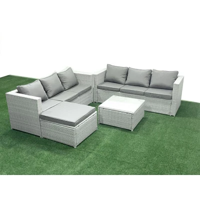 Rattan Garden Outdoor Furniture Set 7 Seater Sofa with Big Footstool Light Grey Mixed Fimous