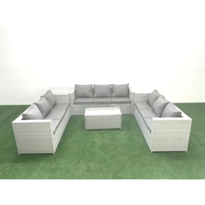 Rattan Garden Outdoor Furniture Set 9 Seater Sofa Coffee Table with Side Light Grey Mixed Fimous