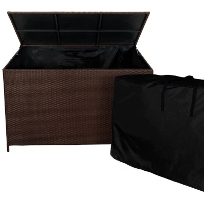 Elevate your outdoor haven with this practical yet stylish brown rattan garden storage box, offering both organization and elegance for your outdoor living space.