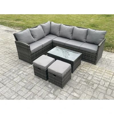 Rattan Lounge Corner Sofa Set Wicker pe Outdoor Garden Furniture with Rectangular Coffee Table 2 Small Footstools Dark Grey Mixed Fimous