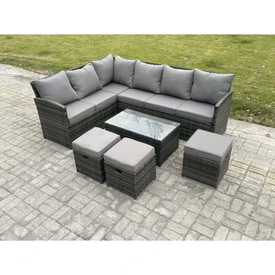 Rattan Lounge Corner Sofa Set Wicker pe Outdoor Garden Furniture with Rectangular Coffee Table 3 Small Footstools Dark Grey Mixed Fimous