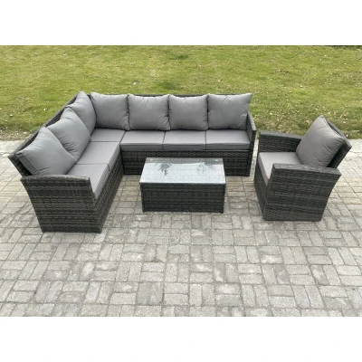 Rattan Lounge Corner Sofa Set Wicker pe Outdoor Garden Furniture with Rectangular Coffee Table Armchair Dark Grey Mixed Fimous