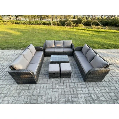 Rattan Lounge Sofa Set 11 Seater Outdoor Garden Furniture with Rectangular Coffee Table 3 2 Small Footstools Dark Grey Mixed Fimous