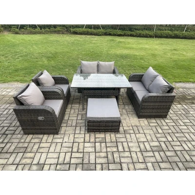 Rattan Outdoor Furniture Garden Dining Set Rectangular Table and Chair Sofa With Big Footstool Dark Grey Mixed Fimous