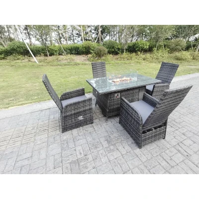 Rattan Outdoor Garden Furniture Gas Fire Pit Dining Table Heater Burner Reclining And Chair Sets 4 Seater Plus Rectangular
