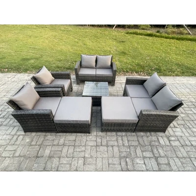 Rattan Outdoor Garden Furniture Sofa Set Table & Chairs with 2 Big Footstool Dark Grey Mixed Fimous