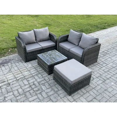 Rattan Sofa Set Outdoor Garden Furniture with Square Coffee Table Loveseat Big Footstool Dark Grey Mixed Fimous