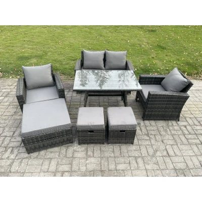 Rattan Wicker Garden Furniture Patio Conservatory Sofa Set with Rectangular Dining Table Armchair 2 Seater 3 Footstools Fimous