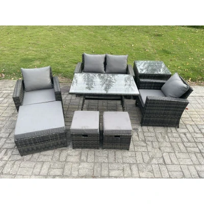 Rattan Wicker Garden Furniture Patio Conservatory Sofa Set with Rectangular Dining Table Armchair 2 Seater 3 Footstools Side Fimous