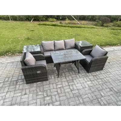 Rattan Wicker Garden Furniture Patio Conservatory Sofa Set with Rectangular Dining Table Reclining Chair 3 Seater 2 Side Tables Fimous