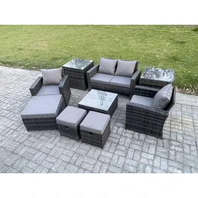 Rattan Wicker Garden Furniture Patio Conservatory Sofa Set with Square Coffee Table Armchair 2 Seater 3 Footstools Side Tables Fimous