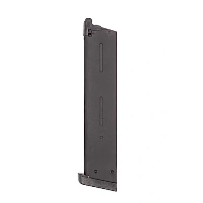 1911/MEU SERIES - for use with RAVEN 1911/MEU Series Airsoft Replicas MATERIALS - RAVEN magazines use full-metal bodies with polymer feed lips & followers GAS EFFICIENCY - RAVEN magazines have large Gas Reservoirs for improved Gas Stability & Shot Performance TREAT THOSE SEALS - always use an Airsoft Gas containing an O-Ring treating Silicone. Always store with a small amount of Airsoft Gas within. EXTENDED - larger magazines not only increase the number of rounds available, but also improve Gas Stability resulting in better shot performance with reduced FPS drop-off
