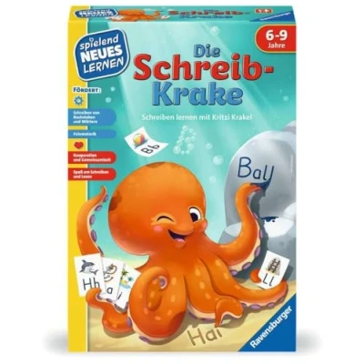 Learn to write while having fun? Yes, that's possible - with this unique educational game that combines exciting player rounds with the comprehensive promotion of reading and writing Whether with or without previous knowledge, thanks to the lively underwater world, all children are immediately thrilled when it comes to targeting letters with the "ink blob" and helping squid Kritzi with the writing task Together or in competition, in any case, everyone is actively engaged in writing at the same time. Fun and action help you learn and deepen all important skills and knowledge such as graphomotor, uppercase and lowercase, sounds and spelling This fun educational game for 2-4 children is always a meaningful gift, whether simply as a souvenir or for a special occasion such as birthday, Christmas or Easter "Playful new learning" supports the development of children. You acquire knowledge in a playful way and can develop personal potentials. In addition, different levels of difficulty and self-control mechanisms allow individual and independent learning, Manufacturer: Ravensburger