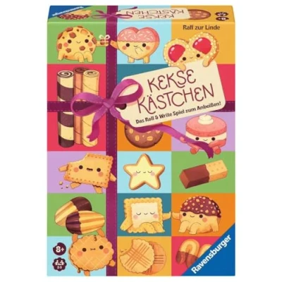 A true game treat based on the popular school game "Cheese Box" and reinterprets this as a modern roll & write game with a delicious theme The sugar-sweet board game is easy to learn, quickly played and invites you to one game after the next thanks to the double-sided game plans. Perfect for families, children and adults over 8 years old At the beginning, the number chips are distributed on your own game plan. The dice determine where all players can draw walls at the same time. It is important to tick many identical cookie fields as quickly as possible Thanks to the compact box, laminated game plans and wipe-clean pens with sponge cap, the game is not only perfect for game evenings, but also for taking with you and on the go An ideal gift for small and large sweet tooths who love simple board games, roll & write games and of course biscuits, for birthday or Christmas, Manufacturer: Ravensburger