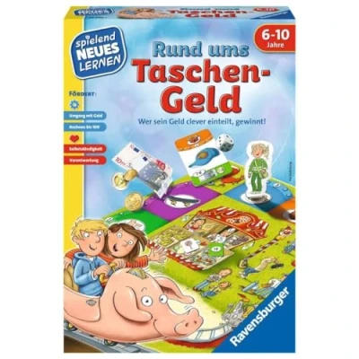 Divide money cleverly: Seven different actions await players on the rummy, for example, buying something to eat or fulfill a heart's desire. The challenge: pocket money is only two euros So if you save some pocket money on the bank and receive interest or earn money, you can go further and can treat yourself to an ice cream or pay the carousel promotion The arithmetic game encourages: handling money, calculating up to 100, independence and responsibility. There are also different levels of difficulty with two different game variants The game is suitable for 2-4 players and brings excitement to any child's room. The ideal gift for a birthday or Christmas. A meaningful activity for the little ones to learn at home and have fun at the same time Playful learning supports the development of children. You acquire knowledge in a playful way and can develop personal potentials. In addition, different levels of difficulty and self-control mechanisms allow individual and independent learning, Manufacturer: Ravensburger