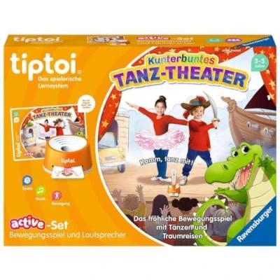 The movement game for little dancers: In the children's game "Colourful Dance Theatre", movements are combined into an individual dance. Alone or together, the body feeling and motor skills are strengthened Includes the tiptoi speaker and a dance cloth. With 15 movement cards and 3 different music styles, each dance is reassembled. 3 dream trips invite one to relax. Tiptoi pen not included. Must be purchased separately Great gift idea: The "Active Set Colourful Dance Theatre" is suitable for 1 to 6 players, is fun and motivates movement - the ideal gift for children aged 3 and up - whether for Christmas or birthday, Manufacturer: Ravensburger