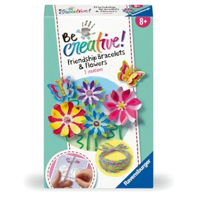 With the BeCreative set of friendship ribbons and flowers from Ravensburger children aged 8 and up make colourful flowers, magical butterflies and various bracelets made from soft knotting yarns For the paper flowers, simply combine the pre-cut cardboard pieces and beads as desired and fix with the pipe cleaners. With the help of the underlay for knotting and 3 different coloured yarns, friendship ribbons are easily created Whether as a decoration or as a gift - the flowers and butterflies from Ravensburger are definitely an eye-catcher and the homemade friendship ribbons not only decorate the arm, they can also be used as an ankle band The craft principle is particularly suitable for friends who already know the first handicraft techniques. It is therefore the ideal gift for girls and boys aged 8 and over and is suitable as a Christmas gift, Easter gift or birthday gift The craft set contains 24 m latch yarn in 3 colours, base for knotting, 10 punching pieces for flowers and butterflies, colourful beads, pipe cleaners, 1 wooden stick, 1 safety pin and detailed instructions (English language not guaranteed), Manufacturer: Ravensburger
