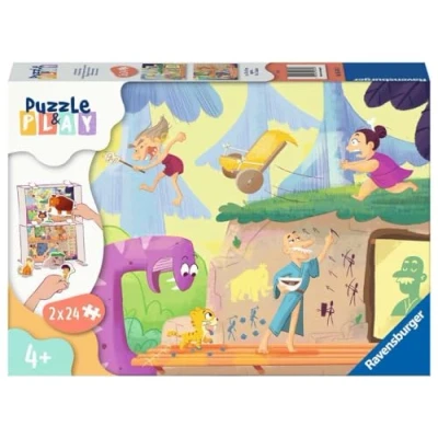 Ravensburger Children's Puzzle 05674 & Play In the Stone Age Village 2 x 24 Pieces for Children from 4 Years