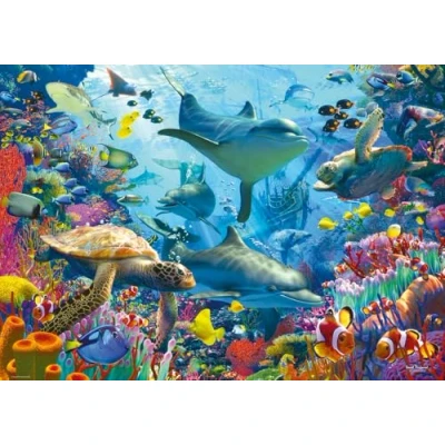 CORAL REEF - Dive into the captivating depths of the ocean with our mesmerizing 1000 piece jigsaw puzzle: "Coral Retreat." Immerse yourself in a vibrant underwater world teeming with life, where dolphins gracefully glide, turtles serenely swim, and clownfish dart among intricate coral formations. PREMIUM QUALITY - Ravensburger puzzles use an exclusive, extra-thick cardboard combined with fine linen structured paper to create a glare-free puzzle image and give you the best experience possible. Our 1000 piece jigsaws are crafted with premium quality materials and measure 70 x 50cm when complete. Fully complies with all necessary UK and EU testing standards. BESTSELLING PUZZLE BRAND WORLDWIDE - With over 1 billion puzzles sold, Ravensburger jigsaw puzzles make ideal gifts for women, men, adults, kids age 12 years up and fit perfectly on our puzzle board. FSC CERTIFIED - This product is made of FSC-certified and other controlled material. By choosing this product, you are supporting responsible management of the world’s forests. POSITIVELY PUZZLING - From fun family times together to long term health benefits and day-to-day mindful moments, jigsaw puzzles make great birthday presents or Christmas gifts., Manufacturer: Ravensburger