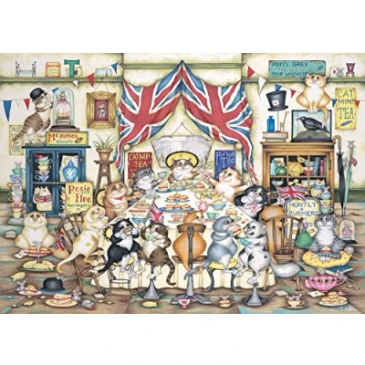 CRAZY CATS - The Crazy Cats enjoy the perfect vintage-style afternoon tea! PREMIUM QUALITY - Ravensburger puzzles use an exclusive, extra-thick cardboard combined with fine linen structured paper to create a glare-free puzzle image and give you the best experience possible. Our 1000 piece jigsaws are crafted with premium quality materials and measure 70 x 50cm when complete. Fully complies with all necessary UK and EU testing standards. BESTSELLING PUZZLE BRAND WORLDWIDE - With over 1 billion puzzles sold, Ravensburger jigsaw puzzles make ideal gifts for women, men, adults, kids age 12 years up and fit perfectly on our puzzle board. FSC CERTIFIED - This product is made of FSC-certified and other controlled material. By choosing this product, you are supporting responsible management of the world's forests. POSITIVELY PUZZLING - From fun family times together to long term health benefits and day-to-day mindful moments, jigsaw puzzles make a great birthday gift or Christmas present., Manufacturer: Ravensburger