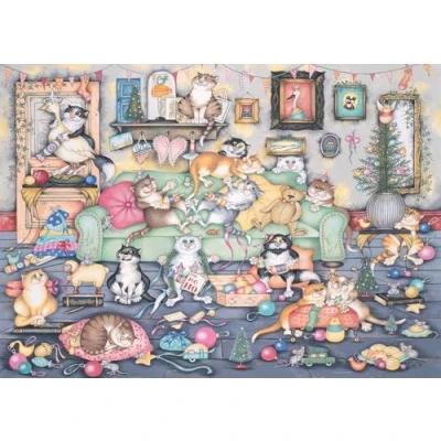 CHRISTMAS IS COMING - Step into a whimsical wonderland with this 1000-piece puzzle capturing the festive chaos of Christmas in a cozy living room filled with crazy cats! Amidst the twinkling lights and merry decorations, mischievous felines are in their element, each engaging in their own unique antics. PREMIUM QUALITY - Ravensburger puzzles use an exclusive, extra-thick cardboard combined with fine linen structured paper to create a glare-free puzzle image and give you the best experience possible. Our 1000 piece jigsaws are crafted with premium quality materials and measure 70 x 50cm when complete. Fully complies with all necessary UK and EU testing standards. BESTSELLING PUZZLE BRAND WORLDWIDE - With over 1 billion puzzles sold, Ravensburger jigsaw puzzles make ideal gifts for women, men, adults, kids age 12 years up and fit perfectly on our puzzle board. FSC CERTIFIED - This product is made of FSC-certified and other controlled material. By choosing this product, you are supporting responsible management of the world's forests. POSITIVELY PUZZLING - From fun family times together to long term health benefits and day-to-day mindful moments, jigsaw puzzles make a great birthday gift or Christmas present., Manufacturer: Ravensburger
