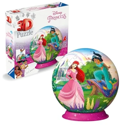 A 72 piece 3D puzzle ball featuring iconic Disney Princesses Bestselling 3D puzzle brand worldwide - Our 3D jigsaw puzzles make ideal gifts for boys and great gifts for girls. This product is made from high quality plastics and of FSC-certified and other controlled material. By choosing this product, you are supporting responsible management of the world’s forests. Our 73 piece 3D puzzle ball jigsaws are crafted with premium quality and when completed are 13cm in diameter. Great 3D puzzles for Children 6 years old and up. Fully complies with all necessary UK and EU testing standards This puzzle uses unique plastic pieces, which slot together to build a sturdy and strong model. No glue required! Either assemble by eye or using the numbers on the reverse side. Positively Puzzling - From fun family times together to long term health benefits and day-to-day mindful moments. Ravensburger 3D Jigsaw Puzzles make a great Christmas gift or birthday present., Manufacturer: Ravensburger