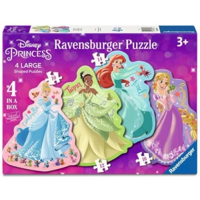 DISNEY PRINCESS TOYS - Piece together these beautiful four large shaped jigsaw puzzles featuring your favourite Disney Princesses; Cinderella, Tiana, Ariel and Rapunzel. PLAYFUL DEVELOPMENT - Perfect toys for your child. Puzzles for kids of every age help support a child’s development as they play, building skills such as concentration and creativity. PREMIUM QUALITY - Ravensburger puzzles use an exclusive, extra-thick cardboard combined with fine linen structured paper to create a glare-free puzzle image and give you the best experience possible. Our 4 large shaped kids puzzles are crafted with premium quality materials and measure approximately 35 x 25cm when complete Great puzzles for Children 3 years old and up Fully complies with all necessary UK and EU testing standards BESTSELLING PUZZLE BRAND WORLDWIDE - With over 1 billion puzzles sold, Ravensburger make a great birthday gift or Christmas present for boys, girls and kids of all ages. FSC CERTIFIED - This product is made of FSC-certified and other controlled material. By choosing this product, you are supporting responsible management of the world’s forests., Manufacturer: Ravensburger
