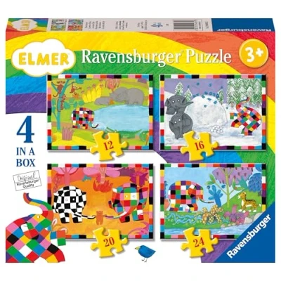 ELMER TOY - Prepare to head off on an adventure with Elmer and friends! PLAYFUL DEVELOPMENT - Perfect toys for your child. Puzzles for kids of every age help support a child’s development as they play, building skills such as concentration and creativity. PREMIUM QUALITY - Ravensburger puzzles use an exclusive, extra-thick cardboard combined with fine linen structured paper to create a glare-free puzzle image and give you the best experience possible. Our 4 in a box kids puzzles are crafted with premium quality materials and measure 19 x 14cm when complete. Great puzzles for Children 3 years old and up. Fully complies with all necessary UK and EU testing standards. BESTSELLING PUZZLE BRAND WORLDWIDE - With over 1 billion puzzles sold, Ravensburger make a great birthday gift or Christmas present for boys, girls and kids of all ages. FSC CERTIFIED - This product is made of FSC-certified and other controlled material. By choosing this product, you are supporting responsible management of the world’s forests., Manufacturer: Ravensburger