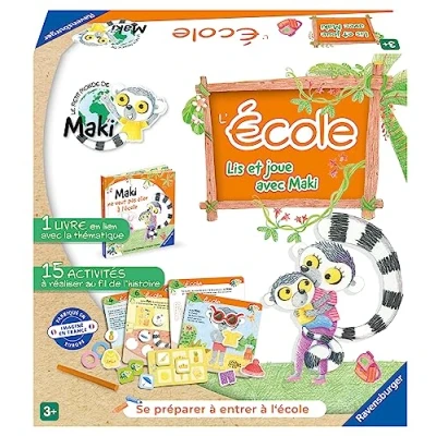 An educational game: The games and instructions in this set are inspired by sophrology, school curricula and the Montessori method to accompany the child in gentle learning! The combination of a book and several activities makes Lis et Joue avec Maki a unique experience! SIMPLE RULES: The rule of each activity is explained on each of the cards. The sheet details the tokens to take and the principle of the activity to be carried out. The rules of the game and additional activities can be found in the leaflet. A HIGH COLOR UNIVERSE: The character of Maki and the entire graphic universe has been created especially for this range of educational games. Maki discovers the world at the same time as your children, but he will also accompany them in their first learning. Contents: 1 book Maki does not want to go to school, 1 plasticine stick, 25 chips, 4 lotto boards, 24 lotto cards, 6 double-sided activity cards, 1 instruction manual. You can carry out the activities throughout the story thanks to the reference at the bottom of the pages of the book, to do like Maki! IN THE COLLECTION: Find also Maki's adventures through the three other sets of the "Read and play with Maki" range: Emotions, Maki becomes big brother; Animals, Maki and the nature reserve; Les Lettres, Maki learns to read., Manufacturer: Ravensburger