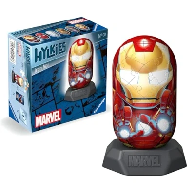 BUILD AND GROW YOUR COLLECTION - Hylkies are an iconic range of collectable figures by Ravensburger, the UK's leading 3D Jigsaw Puzzle manufacturer. Assemble and collect the other Marvel Avengers and heroes. MARVEL GIFTS - Immerse yourself in the Marvel universe with this iconic Iron Man figure. The Hylkies toy collection makes a fantastic gift or present for any fans of the Marvel Avengers franchise. PREMIUM QUALITY - Our 54 piece Hylkie 3D capsules are crafted with premium quality and when completed are 5cm in diameter and 12.6cm high, coming with a display stand. Great 3D puzzles for kids age 6 years old and up. NO GLUE REQUIRED - This 3D puzzle uses unique plastic pieces, which slot together to build a sturdy and strong model. No glue required! Either assemble by eye or using the numbers on the reverse side. FSC CERTIFIED - This product is made from high quality plastics of FSC-certified and other controlled material. Ravensburger 3D jigsaw puzzles make ideal presents boys and girls of all ages, as well as presents for adults., Manufacturer: Ravensburger Spieleverlag