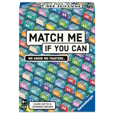 300 questions on 150 cards offer players plenty of variety and long-lasting fun. In three levels, everyone is faced with the challenge of correctly assessing the players at the table and answering the craziest questions appropriately. Match Me offers questions that have never been thought about before, and yet the answer simply feels logical. It remains to be seen whether the other players think the same or whether you have to shake your head in despair. Communication and fun take centre stage here. The rules can be explained in a flash and can be quickly grasped thanks to the game material itself. Get started right away! The party game is suitable for every occasion and every constellation, regardless of whether you are just getting to know each other or are a close-knit group of friends. Match Me is a fun gift that can be played straight away. As everything is included in the game, you can start playing straight away. Everyone grabs a pencil and a piece of paper from the pad. As soon as the first question has been read out, it's time to assess your fellow players., Manufacturer: Ravensburger