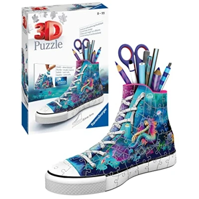 Enjoy piecing this stunning underwater themed plastic 3D puzzle. This magical mermaid inspired 108 piece sneaker shaped 3D puzzle is a must have for any sea lovers. Bestselling 3D puzzle brand worldwide - Our 3D jigsaw puzzles make ideal gifts for boys and great gifts for girls. This product is made from high quality plastics and of FSC-certified and other controlled material. By choosing this product, you are supporting responsible management of the world’s forests. Our Trainer 3D jigsaws are crafted with premium quality and when completed measure 21 X 8 X 13cm. Great 3D puzzles for Children 8 years old and up. Fully complies with all necessary UK and EU testing standards. This puzzle uses unique plastic pieces, which slot together to build a sturdy and strong model. No glue required! Either assemble by eye or using the numbers on the reverse side. positively Puzzling - From fun family times together to long term health benefits and day-to-day mindful moments. Jigsaw puzzles are a great birthday gift or Christmas present., Manufacturer: Ravensburger