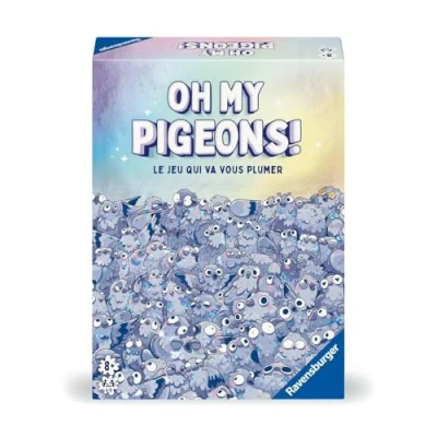 FAMILY AMBIANCE GAME: Oh My Pigeons turns your living room into a real dovecote! This funny board game mixes strategy and chaos for hilarious games with family or friends. Lure pigeons to your bench, steal others' pigeons, and swing droppings to get enemy birds out of the way. Simple rules: The purpose? Fill your bank with pigeons first to win. Use your cards cleverly to attract these birds, but watch out for other players who will try to get you! The rules are explained in 2 minutes and each game lasts about 15 minutes. GUARANTEED RETURNS: In this mood game, situations constantly turn around! Keep your best cards under your wings and play them at the right time. The one who leads can lose everything in an instant. Stay alert until the last second so you don't get plucked. Guaranteed fun for everyone: Oh My Pigeons brings together young and old around the table for 2 to 5 players from 8 years old. This funny board game requires no special experience and guarantees laughter at every game. Perfect to liven up your evenings! COMPLETE AND RESISTANT MATERIAL: 5 double-sided benches, 50 illustrated cards, 36 coloured pigeons and 1 dice. Robust material that withstands wild games and repeated manipulations. Everything you need for hours of gameplay in a good mood!, Manufacturer: Ravensburger