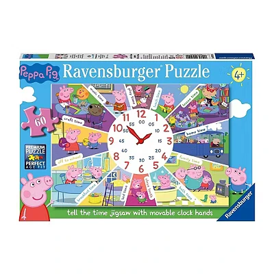 Ravensburger Peppa Pig Tell The Time 60 Piece Clock Jigsaw Puzzle for Kids Age 4 Years Up Moveable Hands