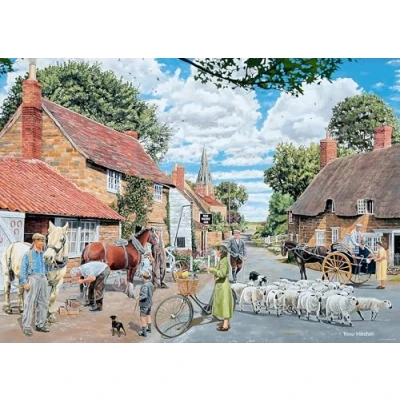 Beautiful Trevor Mitchell artwork – 1000-piece Ravensburger puzzle featuring The Village Farrier, with farrier, milk cart, shepherd, sheep, and a nostalgic countryside village scene.. Bestselling puzzle brand worldwide - With over 1 billion puzzles sold, our jigsaw puzzles make ideal gifts for women, great gifts for men and fit perfectly on our puzzle board. This product is made of FSC-certified and other controlled material. By choosing this product, you are supporting responsible management of the world’s forests. Our 1000 piece jigsaws are crafted with premium quality materials and measure 70 x 50cm when complete. Great for Adults and ideal puzzles for Children 12 years old and up. Fully complies with all necessary UK and EU testing standards Our puzzles use an exclusive, extra-thick cardboard combined with our fine, linen structured paper to create a glare-free puzzle image and give you the best experience possible. #Positivelypuzzling - From fun family times together to long term health benefits and day-to-day mindful moments, there are so many positives about the humble Jigsaw! They make a great birthday gift or smashing Christmas gift, Manufacturer: Ravensburger