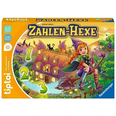 Ene mene 1, 2, 3 - Oh hurt, how did it go on Who will help the witch count so she can recite her spell There is much to discover in the magical witch house Ideal for getting started in the world of first numbers. Two difficulty levels in the number range from 1 - 10. tiptoi counts with and motivates learning Learn to count by the way: In the fantastic world, children count familiar everyday objects. New and well-known songs invite you to sing along Great gift idea for Christmas or birthday: The educational game number witch is suitable for 1 - 4 children from 3 years to awaken the fun of discovering the numbers. 8 detailed room cards offer plenty of variety and always new counting occasions. 21 imaginative costume cards allow fun combinations. Tiptoi pen not included. Must be purchased separately, Manufacturer: Ravensburger
