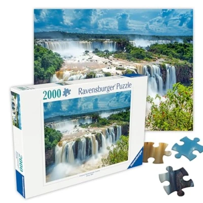 The Iguazu Falls are located on the border between Brazil and Argentina. This wonderful jigsaw puzzle photograph captures some of the size, power and splendour of the falls, which extends to over 1.7 miles wide and over 250 feet high. Bestselling puzzle brand worldwide - With over 1 billion puzzles sold, our jigsaw puzzles make ideal gifts for women, great gifts for men and fit perfectly on our puzzle board. This product is made of FSC-certified and other controlled material. By choosing this product, you are supporting responsible management of the world’s forests. Our 2000 piece jigsaws are crafted with premium quality materials and measure 98 x 75cm when complete. Great for Adults and ideal puzzles for Children 12 years old and up. Fully complies with all necessary UK and EU testing standards Our puzzles use an exclusive, extra-thick cardboard combined with our fine, linen structured paper to create a glare-free puzzle image and give you the best experience possible. Positively Puzzling - From fun family times together to long term health benefits and day-to-day mindful moments, jigsaw puzzles make a great birthday present or Christmas gift., Manufacturer: Ravensburger