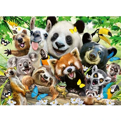 WILDLIFE ANIMALS TOYS - Grab your Selfie Sticks with these whacky wildlife posers! Amongst our very merry band is a giant panda, llama, brown bear, sloth, koala, toucan, frog, cockatoo and a pair of parrots. A lovely Animal Toy PLAYFUL DEVELOPMENT - Perfect toys for your child. Puzzles for kids of every age help support a child’s development as they play, building skills such as concentration and creativity. PREMIUM QUALITY - Ravensburger puzzles use an exclusive, extra-thick cardboard combined with fine linen structured paper to create a glare-free puzzle image and give you the best experience possible. Our 300 piece kids puzzles with XXL large pieces are crafted with premium quality materials and measure 49 x 36cm when complete. Fully complies with all necessary UK and EU testing standards BESTSELLING PUZZLE BRAND WORLDWIDE - With over 1 billion puzzles sold, Ravensburger make a great birthday gift or Christmas present for boys, girls and kids of all ages. FSC CERTIFIED - This product is made of FSC-certified and other controlled material. By choosing this product, you are supporting responsible management of the world’s forests., Manufacturer: Ravensburger