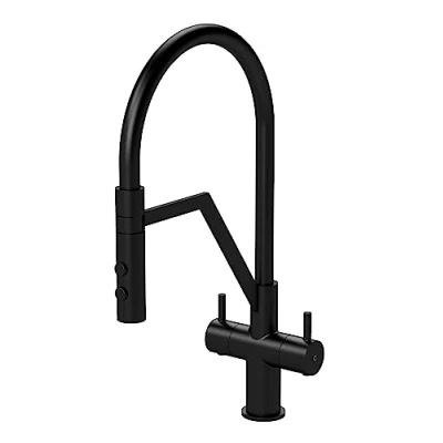 Ravi Mono Kitchen Sink Mixer Tap Dual Lever Handle Matt Black Nuie